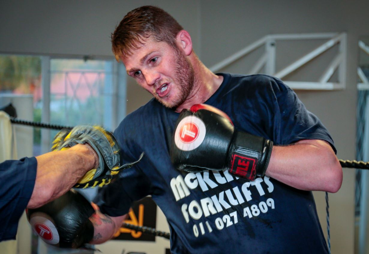 In trainer Harold Volbrecht’s gym in working class Boksburg, Oosthuizen looks both heavy and fast. He’s heavy in the sense that he’s comfortable, but not podgy, around the 90kg mark. Mchunu may be more chiselled, but Oosthuizen is thick and lean. The sometime middleweight won’t be cowed by the physical battle.