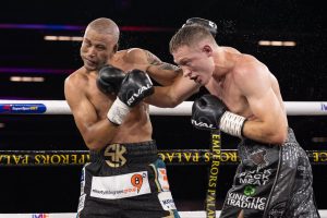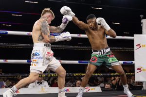 Knapp worked the body viciously, whipping in hard shots to the body and alternating with punches upstairs to put a halt to Bagwasi’s unbeaten run.