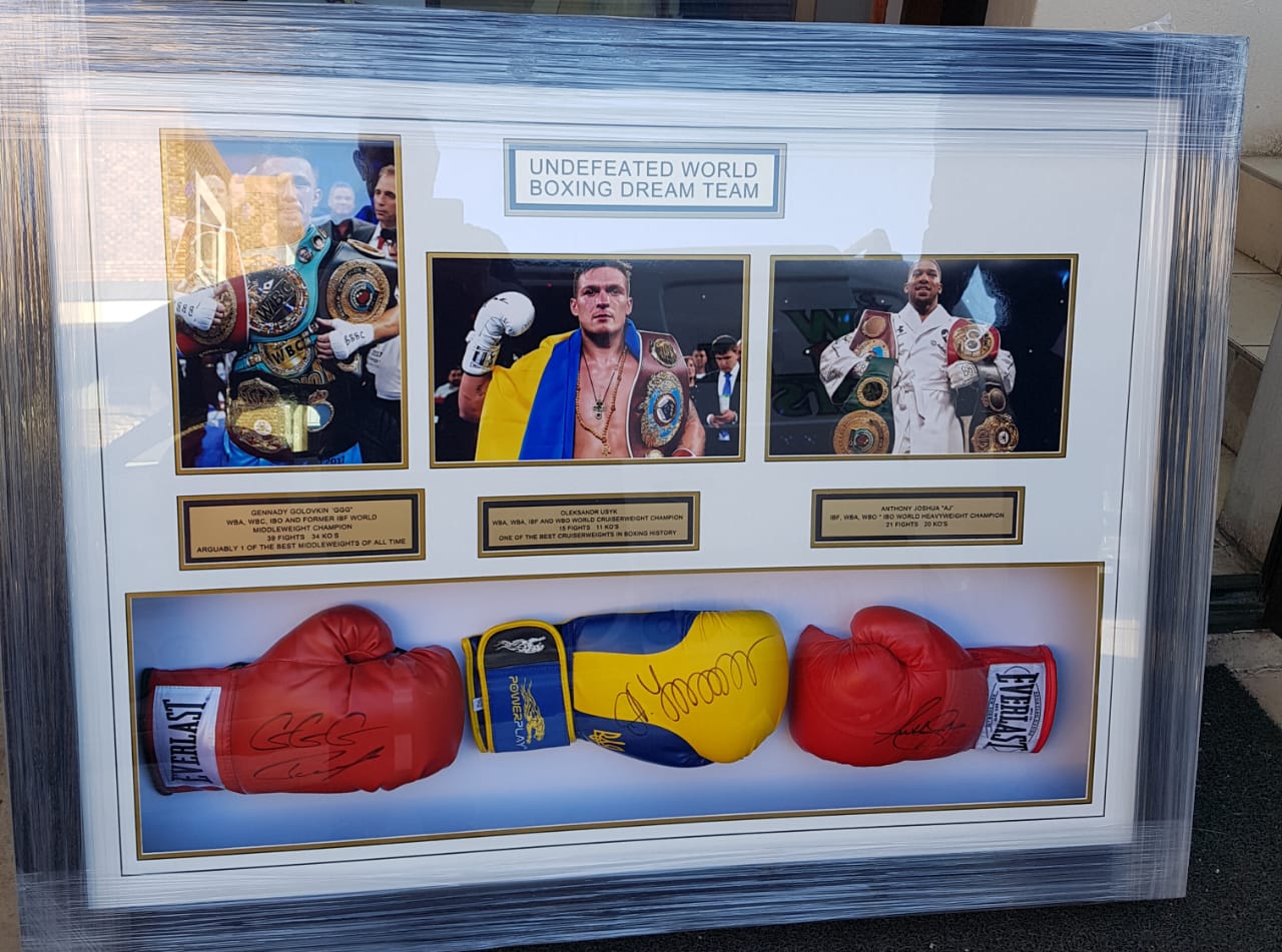 The framed and signed gloves of Gennady Golovkin, cruiserweight champion Oleksandr Usyk and heavyweight king Anthony Joshua were picked up for R30 000. And the framed and signed gloves of the Klitschko brothers and the late Corrie Sanders picked up a handy R20 000.